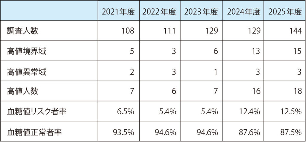 ●血糖値リスク(健康診断個人表より)