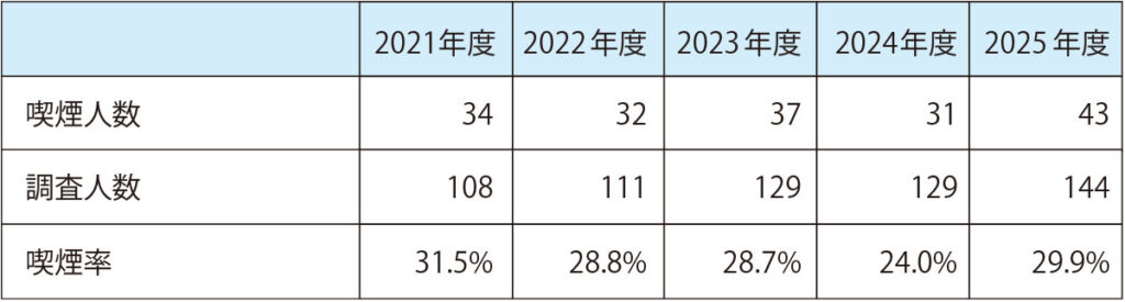 ●喫煙率(健康診断個人表より)
