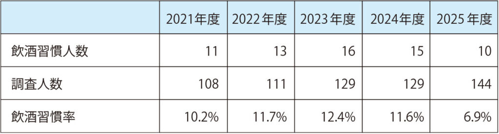 ●飲酒習慣率(健康診断個人表より)