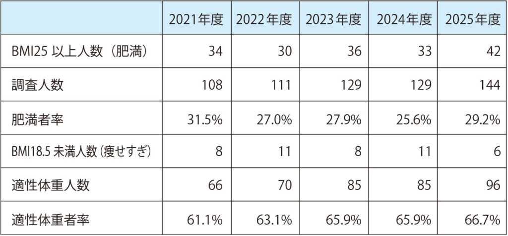 ●肥満者率・適性体重者率(健康診断個人表より)